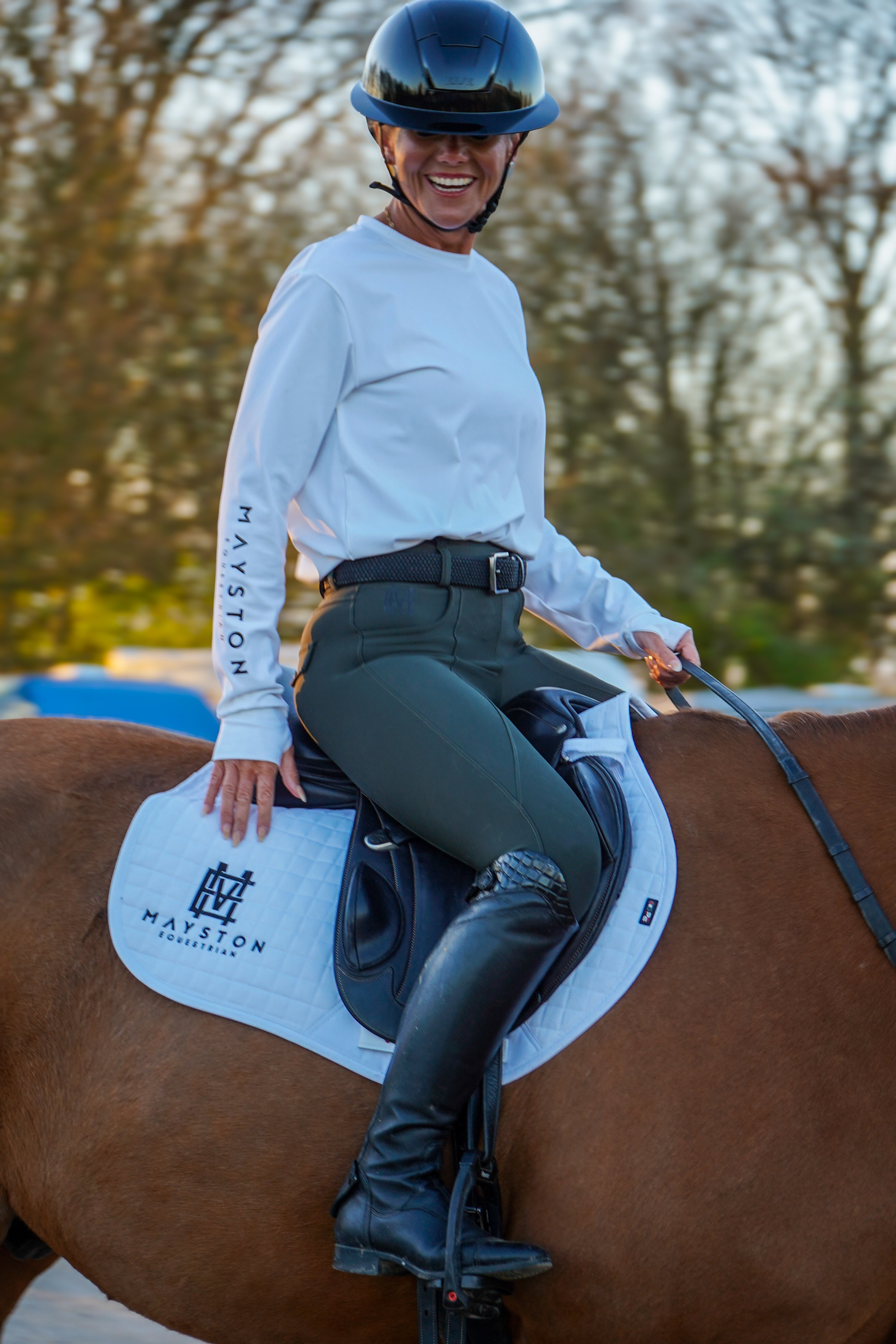 “Designing MAYSTON was my answer to a common frustration: the need for equestrian clothing that truly meets the comfort and style needs of riders in their 40s and beyond. Every piece reflects my journey and passion for creating the perfect blend of elegance and functionality”